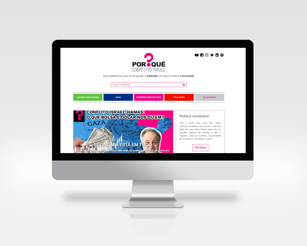 Procurar conteúdo na internet pode ser uma tarefa trabalhosa, uma vez que podemos não encontrar material no formato ou linguagem adequada para o uso com os estudantes. Pensando nesta dificuldade enfrentada por professores, sugerimos como ferramenta de apoio o site Por Quê?. Este site foi desenvolvido para aproximar o público não especializado aos princípios econômicos básicos e mostrar a importância e a aplicação prática desse conhecimento. Portanto, seu material é produzido em linguagem acessível, ao mesmo tempo que trata dos mais variados temas dentro de Economia e Educação Financeira. Você pode consultar gráficos, infográficos, artigos de blog, e vídeos sobre temas de economia e atualidades, e também a Econopédia, uma enciclopédia virtual de termos essenciais da Economia.